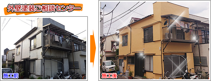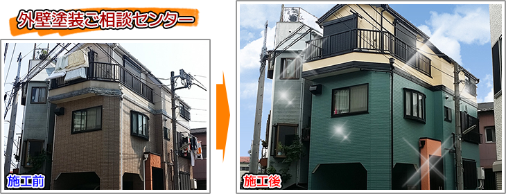 東京都足立区の外壁塗装工事の施工事例です。外壁塗装をそろそろ考えているという方はお気軽にご相談ください。塗装工事の専門家がご要望に合わせて工事内容や工事費用をご案内いたします。